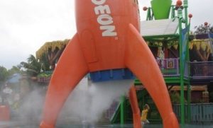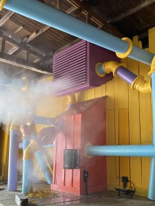 For the ‘River Rapids’ in Drayton Manor Park we designed and installed several effects for this attraction including simulated smoke from the chimney stacks and funnels in themed elements of the ride which were created using high-pressure water as it is far cheaper to run, has no consumables (other than water) and needs virtually no maintenance.