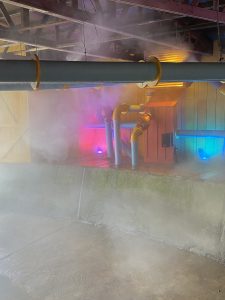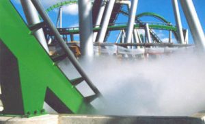 For the project of ‘Sik’ located in Flamingo Land we installed a pair of large water fogging systems designed to fill the tunnels with a thick, opaque, fog so guests cannot see where the tunnel starts or ends – making for both a frightening and exhilarating experience. Being real fog the only consumable is water so there are no harmful chemicals being introduced into the atmosphere or expensive smoke fluids to buy.